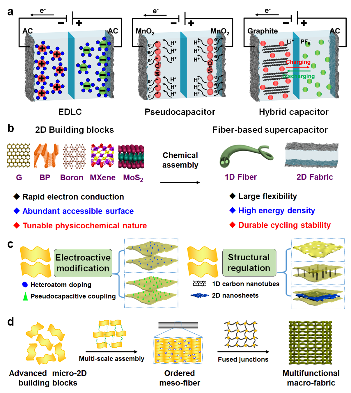 二维复合纳米片基超级电容器—从基元设计,纤维组装,织物构筑到可穿戴应用