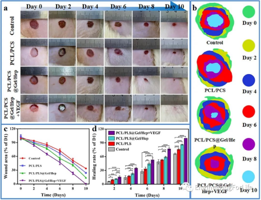图8 PCL/PCS@Gel/Hep+VEGF促进皮肤伤口愈合