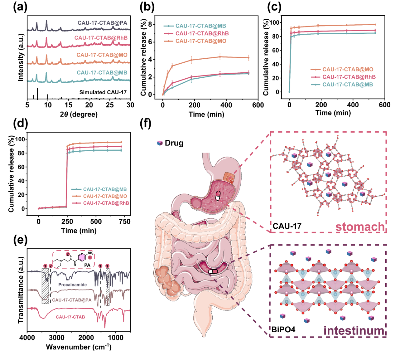 最后,基于其特殊的物理和化学特性,该Bi-MOF被用于碘蒸汽的去除和肠道选择性药物释放。(图2)