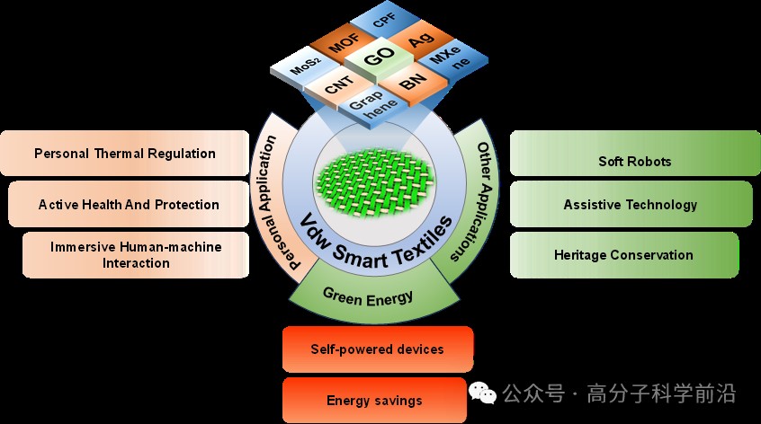 图1 vdW智能纺织品的材料及应用示意图。