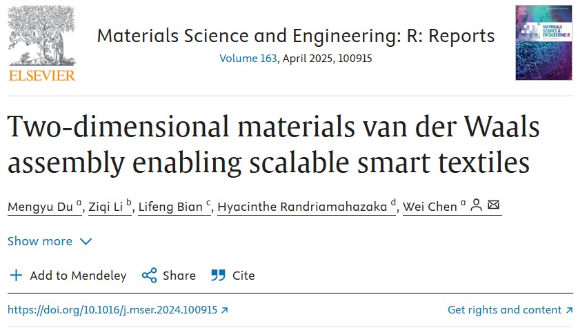 近期,MK体育陈韦教授团队在《Materials Science and Engineering: R: Reports》上发表了题为“Two-dimensional materials van der Waals assembly enabling scalable smart textiles”的综述文章,这项工作总结了近5年来规模化vdW智能纺织品的研究取得显著进展,涵盖了2D功能材料、组装机制、制备与集成技术,并在医疗保健、人机交互等得多个领域应用(图1)。重点分析了规模化生产的技术问题,并针对性能、稳定性等挑战和未来研究方向提出相应关注和进一步发展的关键问题,为vdW智能纺织品与互联网融合及商业应用提供了重要指导,助力实现万物互联的智慧生活。