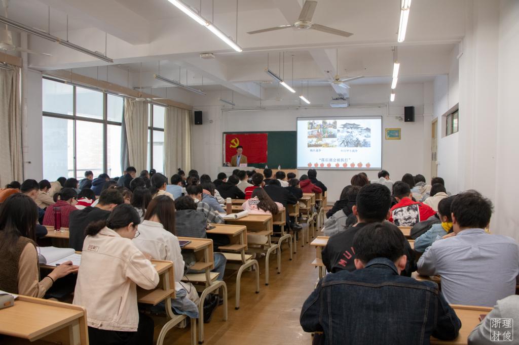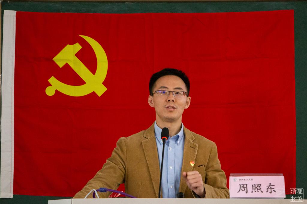 周照东老师以“迎接新时代 展现新担当 谋求新作为”为主题,通过对比国内和国外的生活环境引入课程内容,党课中首先强调不忘初心,牢记使命”的重要性以及解释说明了初心和使命是什么。随后“不忘初心,牢记使命”的历史溯源、基本要求、实践路径三个方面进行讲述