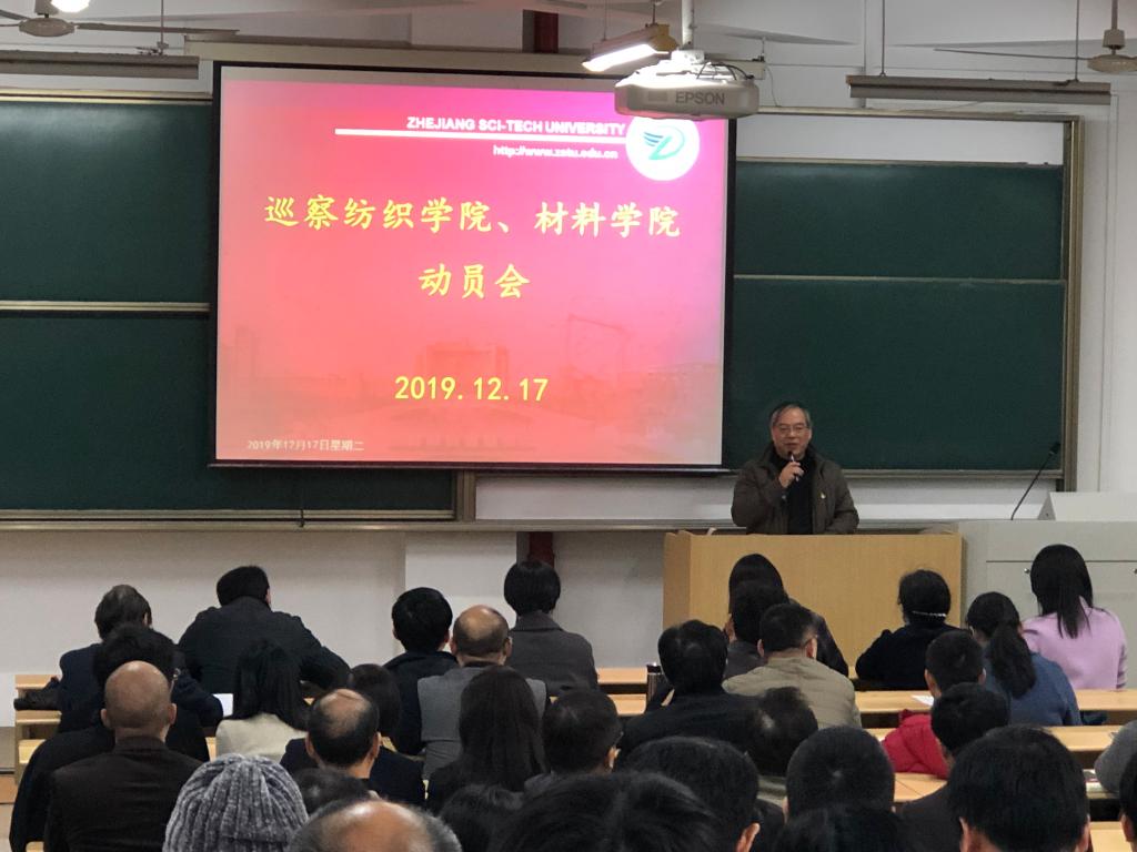 纺织科学与工程公司(国际丝绸公司)党委书记祝成炎和公司党委书记傅雅琴分别做表态发言。他们表示,接受巡察是重要的政治任务,个人无条件接受巡察监督,同时代表班子表示将全力支持配合巡察工作,对巡察组指出的问题切实加以整改,还要求全院师生积极配合巡察组开展工作。