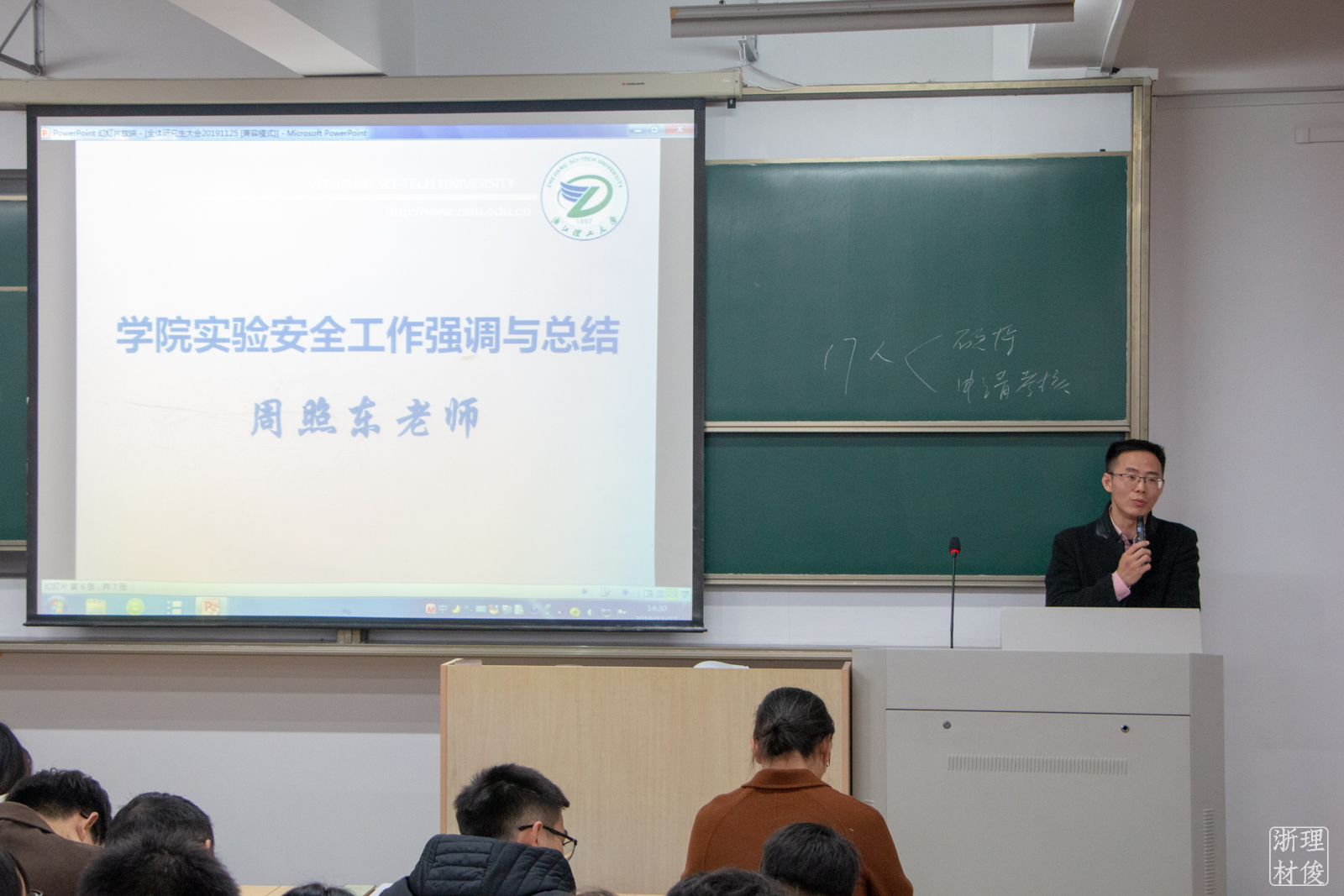 校实验室与设备管理处王江老师、公司副经理杨叶锋副教授、公司党委委员周照东老师、高分子系副主任张明副教授出席了本次大会。大会由公司学工办主任、研究生辅导员魏莉莉老师主持。公司全体2018级、2019级研究生、博士生参加此次大会。