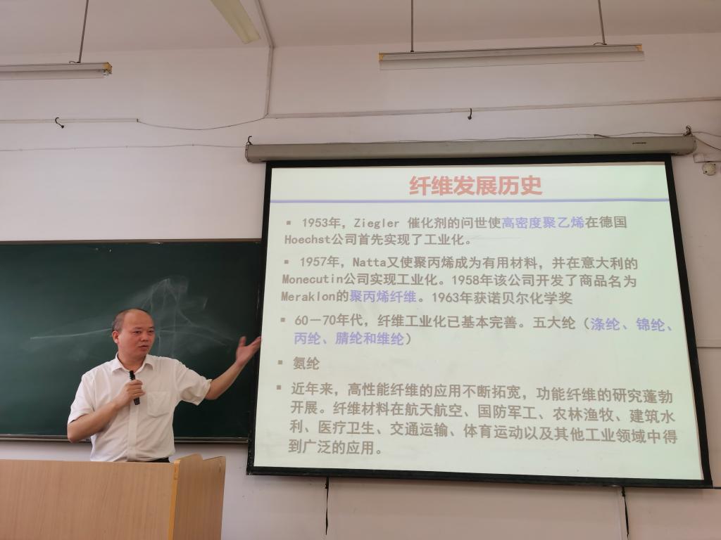 两位领导携公司几位年轻助教老师走进了《高技术纤维》的课堂,和同学们一同听课,充分了解教学一线情况。员工到课情况良好、听课认真、精神饱满、学风端正。该课程的任课老师正是董事长陈文兴院士,作为公司教授,陈院士一直非常重视本科教学。陈院士上课思路清晰、循循善诱,结合自己的求学经历和专业发展,讲述了纤维的发展历史和现状,给员工上了一堂生动的高技术纤维专业课,课堂气氛十分活跃。