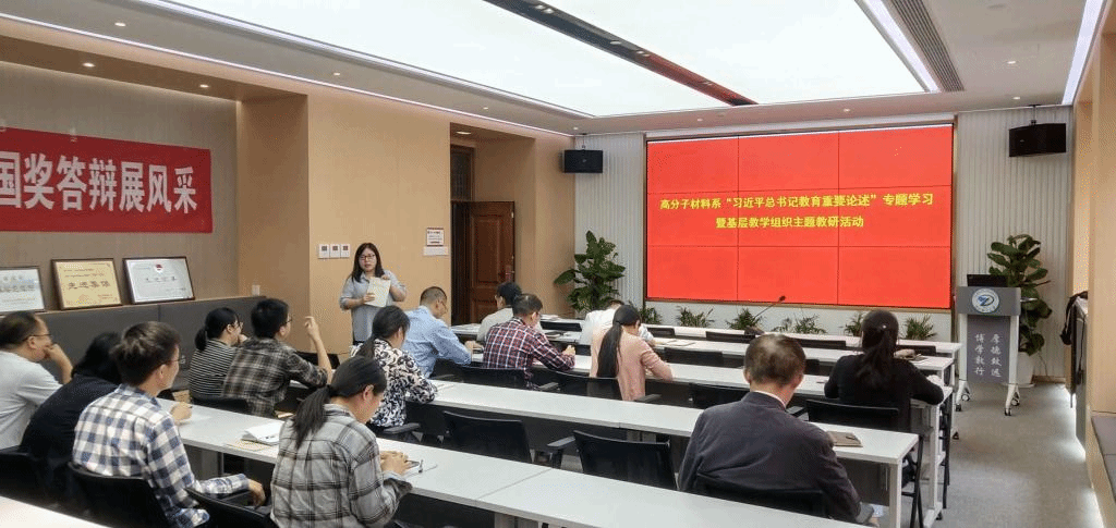 为全面学习贯彻习近平总书记教育重要论述,提高本科教学质量,高分子材料系结合党日活动与基层教学组织主题教研活动,于10月14日在公司415报告厅开展了全系教职工主题学习大会,公司党委书记傅雅琴教授、副经理张先明教授及全系教职工参加了本次活动。