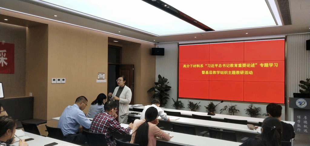 首先开展了关于“习近平总书记教育重要论述”主题学习活动。高分子系支部书记、系副主任刘琳老师主在会议上谈到,要深入学习并体会习近平总书记关于教育的重要论述,并能真正贯彻到实际教学中去。面对新时代新形势对高等教育提出的更高要求,老师要不断提高综合素养,严格要求自我,不断完善自己,执着于以员工为中心的教育理念,为国家培养德才兼备的优秀人才而不懈努力。在刘琳老师的引导下,高分子系老师针对主题展开积极而富有成效的讨论。