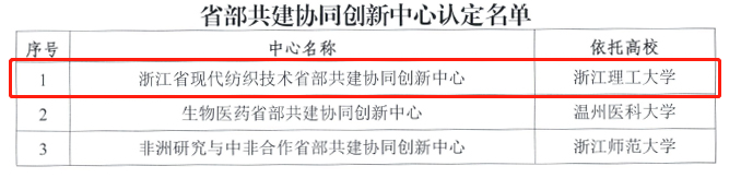 近日,教育部办公厅公布了2020年度省部共建协同创新中心认定名单,由MK体育申请、省教育厅推荐的“浙江省现代纺织技术省部共建协同创新中心”被教育部认定为2020年度省部共建协同创新中心。
