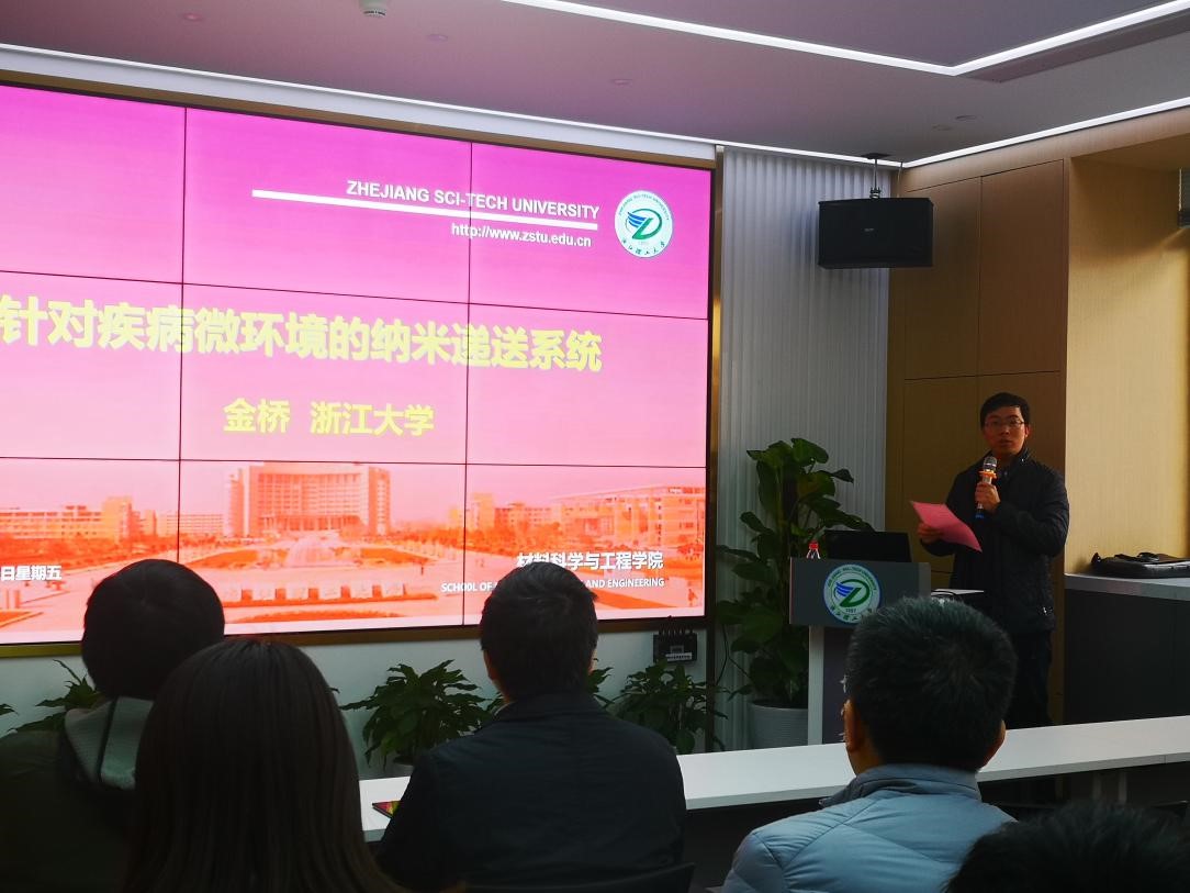 12月4日下午,浙江大学高分子科学与工程学系生物大分子研究所金桥副教授应邀来公司做题为“针对疾病微环境的纳米递送系统”的学术报告,报告在24号楼415报告厅举行,本次报告由公司杨叶锋副经理主持。