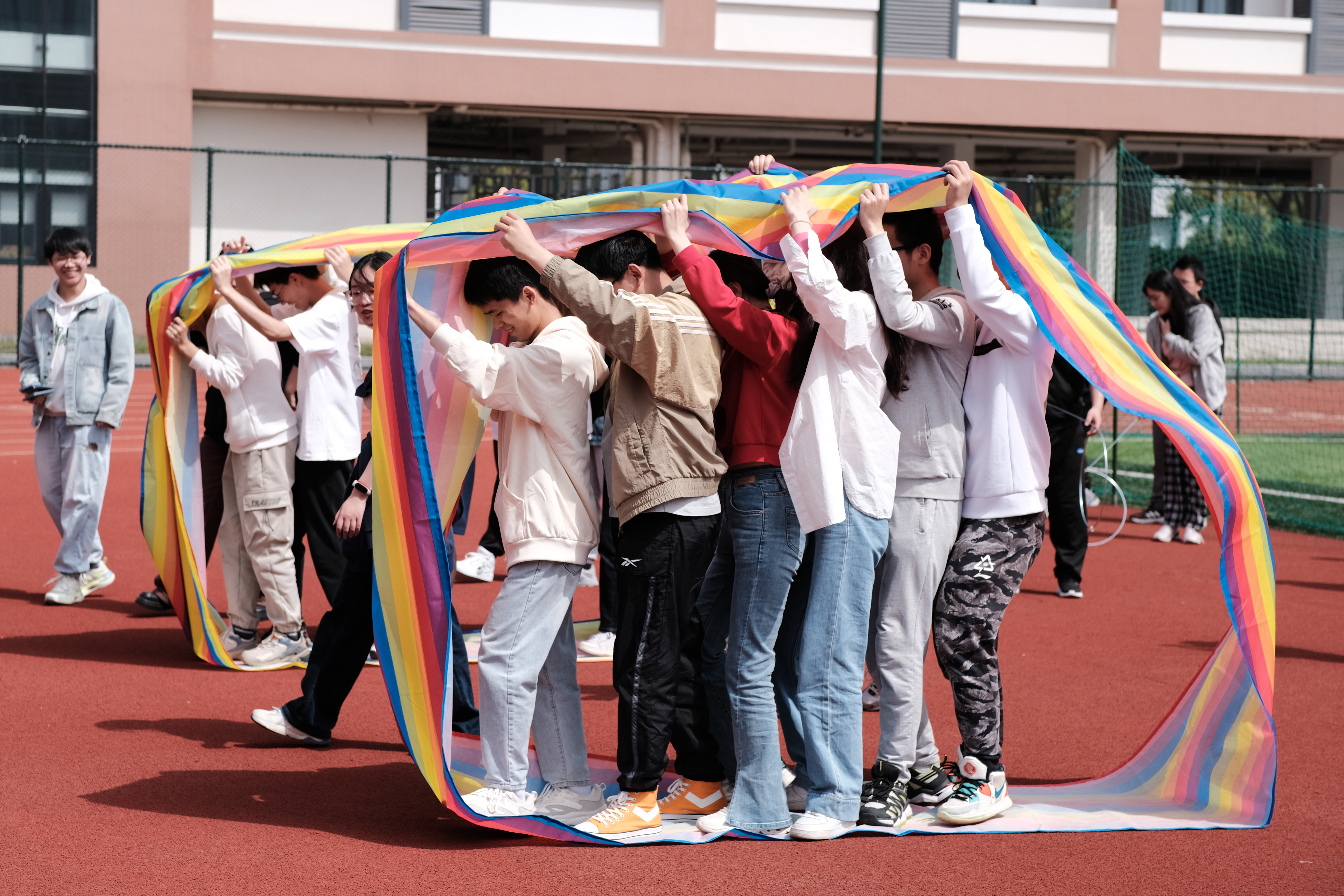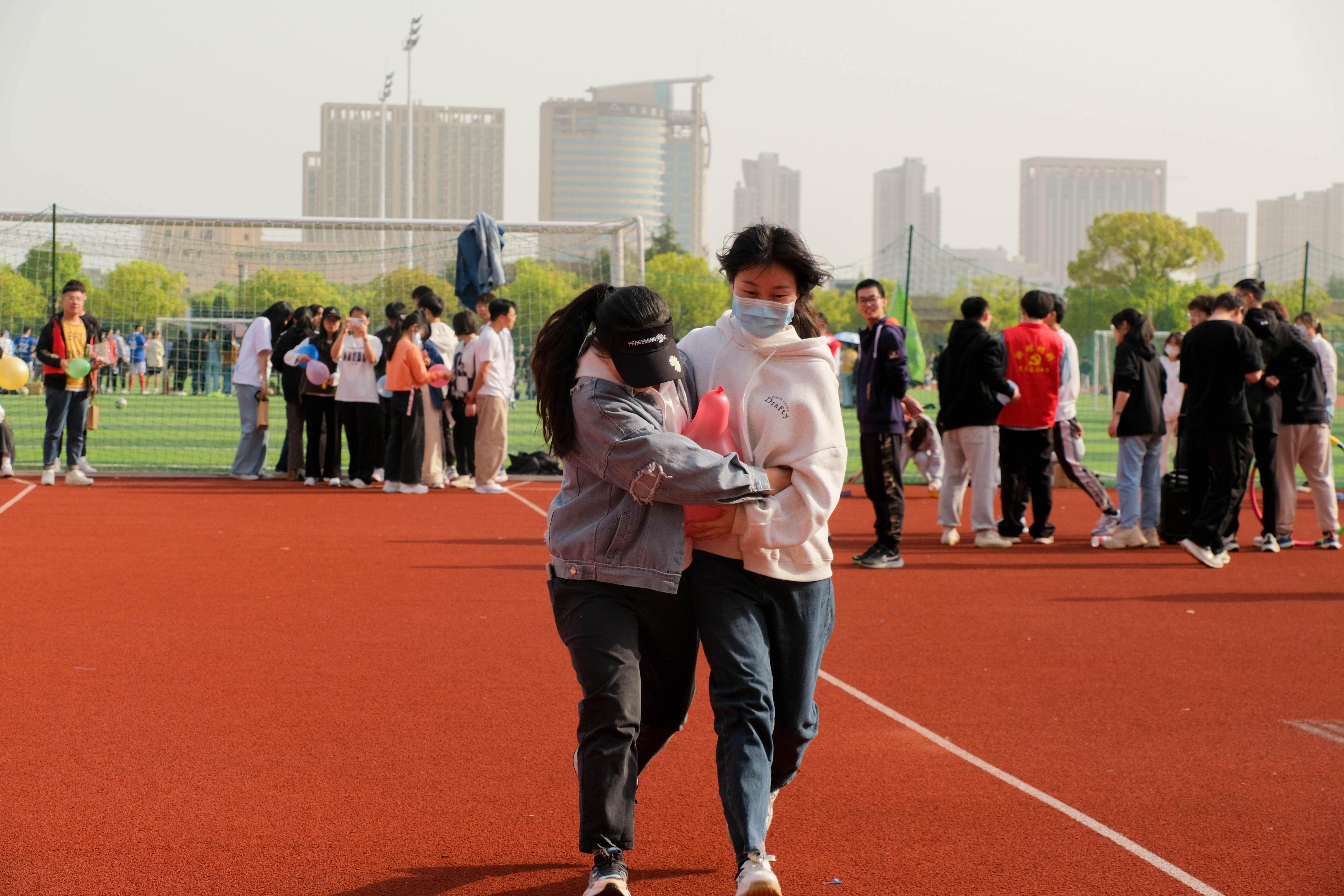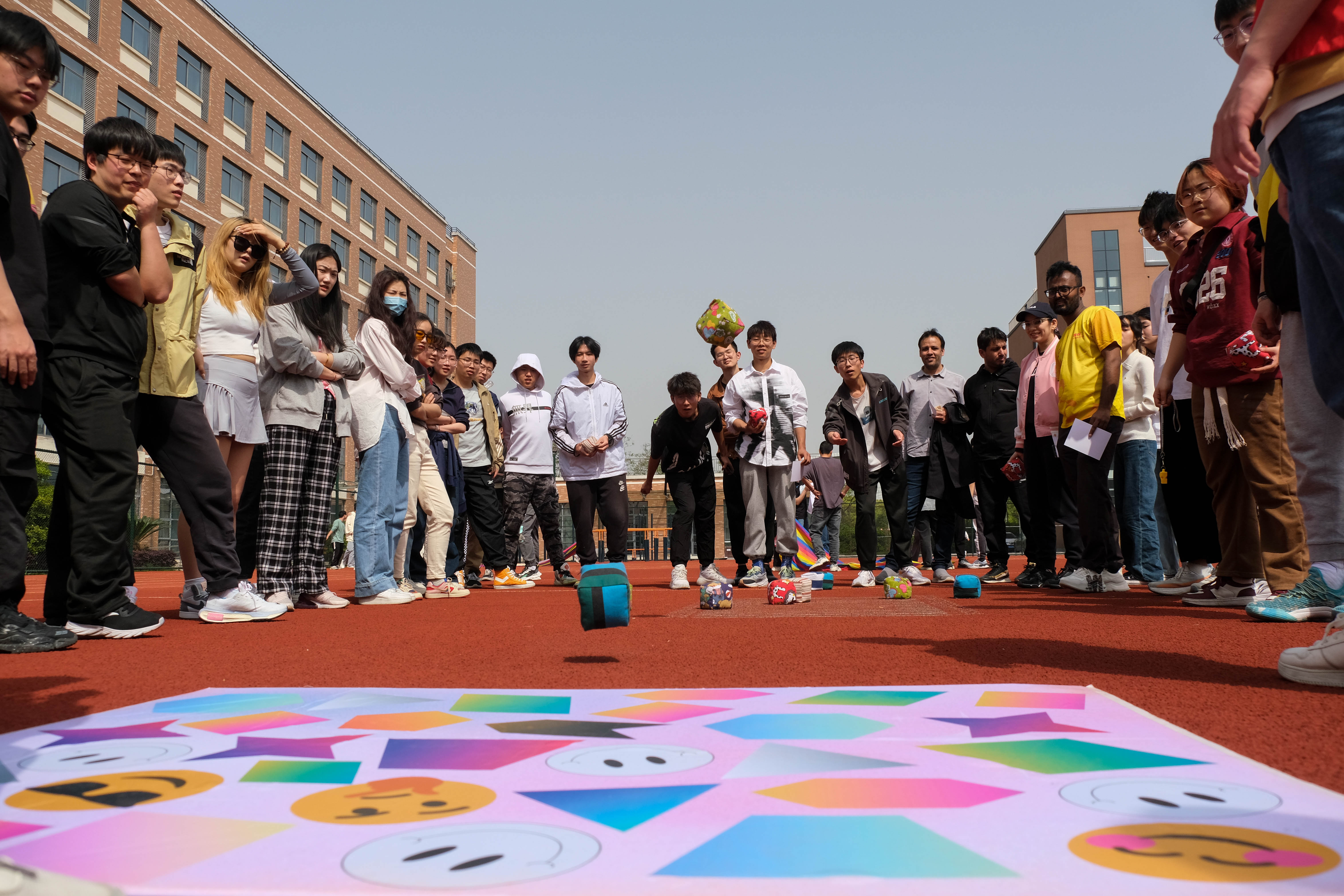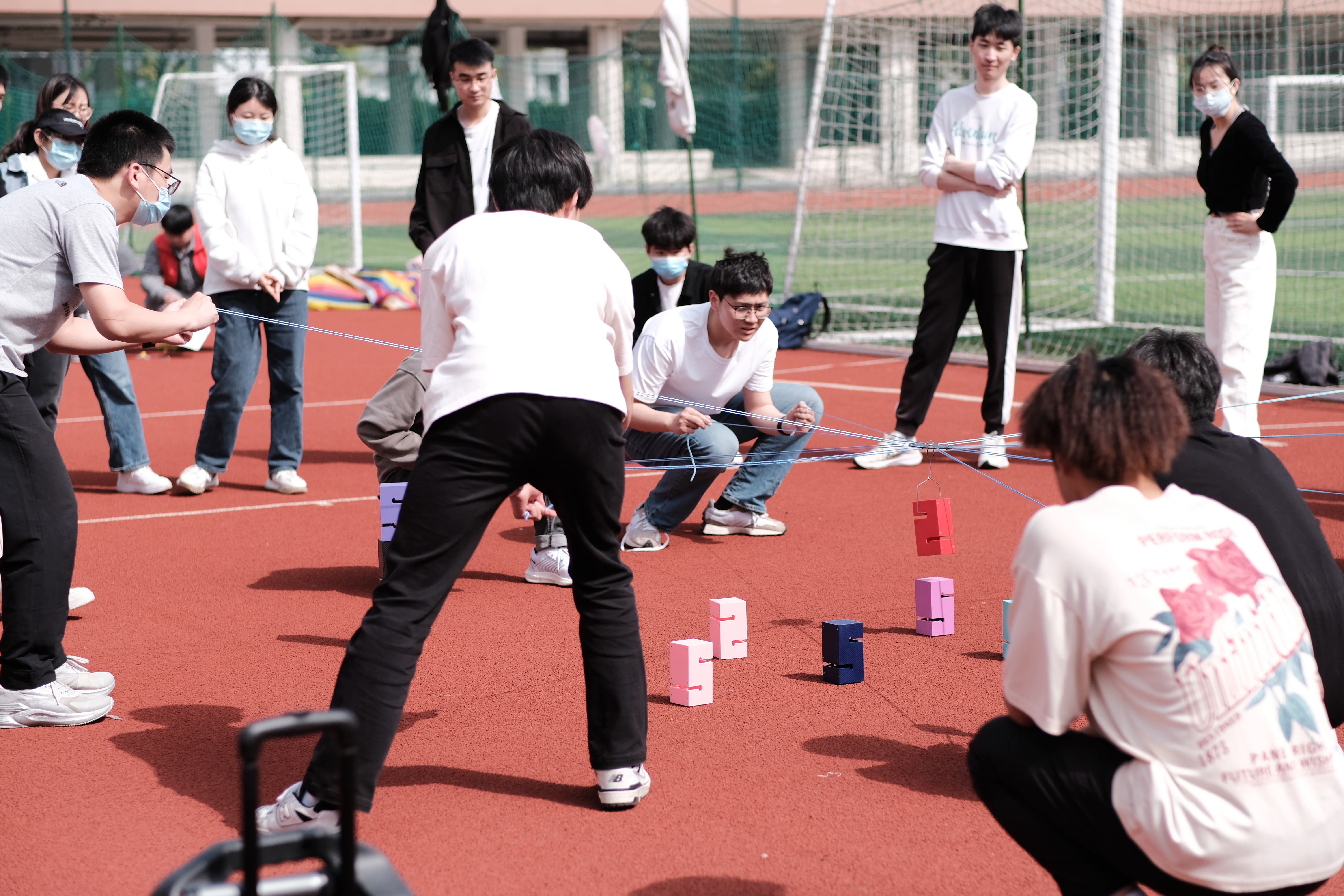 本次趣味运动会设有拔河比赛、无敌风火轮、一圈到底等9个团队项目及夹豆子、跳绳、呼啦圈等5个个人项目。拔河比赛拉开了趣味运动会的帷幕,外籍师生积极参与到比赛中,一根绳,两个队,团结拼,奋力赢。各支队伍的同学在比赛中充分发扬了团结合作精神,在各个项目中拼尽全力,勇争第一,使运动会既充满了趣味性,又充满了挑战性,同学们的欢声笑语和温暖的春风一起飘荡在北田径场。激烈又有趣的比赛项既锻炼了教师和员工的身体,又使各班级和员工组织之间的关系更加亲近,师生间的交流也增进不少。