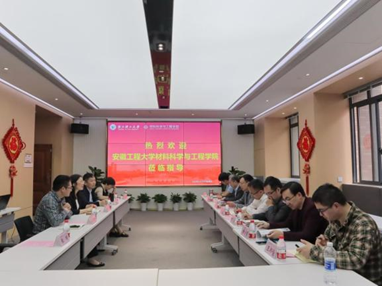 4月28日上午,安徽工程大学MK体育在党委书记郭广春、经理左如忠带领下来MK体育调研交流。公司党委书记仰滢、经理张先明、副经理江国华、高分子材料系系主任张明、综合办公室主任魏莉莉等出席了会议。