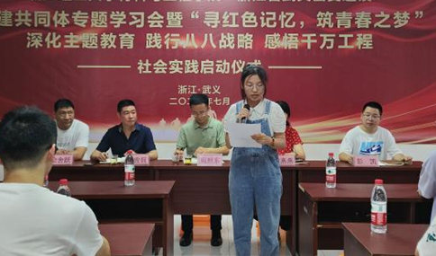 随后,7月3日,公司党委副书记周照东老师亲自带领其中一支“寻红色记忆,筑青春之梦”暑期社会实践团队出发,抵达了武义县茭道镇朱王村,与茭道镇领导们共同举行党建共同体专题学习会暨“寻红色记忆,筑青春之梦”深化主题教育、践行八八战略、感悟千万工程,社会实践启动仪式。
