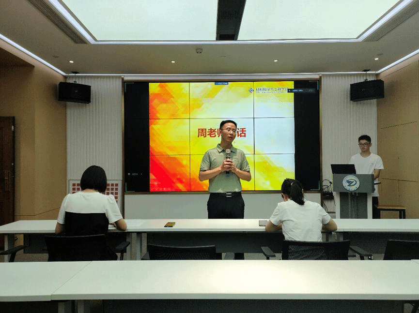 周照东老师首先进行了一个简短的发言,希望同学们能够深入挖掘实践特色,与公司特色相结合,确保实践内容有深度、有意义、有体会并在随后为各实践队授旗。