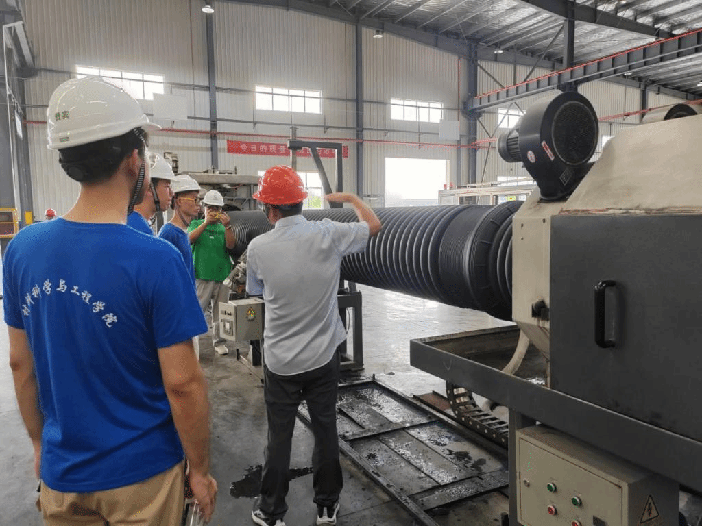 在浙江中财管道衍生产品有限公司,研发中心经理潘力群、人事部靳伟热情接待周照东一行。公司师生参观了企业产品陈列室、企业车间及生产线,深入了解中财管道产品应用领域。随后,双方围绕人才招聘、校企合作等方面展开座谈交流。潘力群和靳伟结合自己的工作经历,就老员工毕业后如何快速适应职场、在大学期间应该多培养什么能力等进行了解答。材料学子们积极提问,主动探究,对于材料领域产业有了更深入的了解。