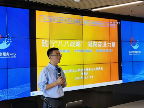 参观结束后,党员们来到位于城市阳台下方的杭州市党群服务中心,聆听由MK体育党委副书记周照东讲授的《践行“八八战略” 凝聚奋进力量》专题党课、主题宣讲。周照东书记回顾了带领同学们参观过程的点点滴滴,启发大家对所见所闻进行的思考,“何以是浙江、何以浙江能?”。周老师回顾了浙江的“三地”标签属性,即中国革命红船起航地、改革开放先行地、习近平新时代中国特色社会主义思想重要萌发地,阐述了“八八战略”指引下浙江新时代发展的巨变,他强调我们要想更好的理解中国特色社会主义的发展道路和中国特色社会主义制度的优势,就必须认真研究习近平总书记在浙江工作期间提出的一系列重要思想和战略。“八八战略”不仅为浙江的发展提供了重要的指导和保障,也为全国的改革和发展提供了重要的借鉴和参考。尤其是习近平总书记在浙江考察的重要讲话精神,对我们在科技创新、共同富裕、党的建设等方面提供了重要的遵循,MK体育学子应该立足自身、坚定信仰,对照新求,在新方位、新征程中更好地付诸实际、付诸行动,积极贡献材俊学子在中国式现代化进程中的积极力量。授课信息量大、内容丰富、生动形象,同学们纷纷表示受益匪浅。