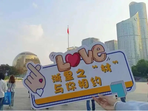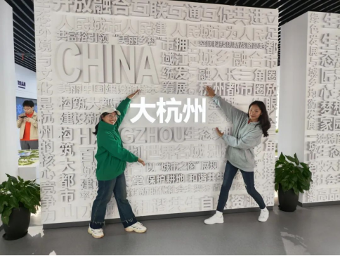 2023级材料工程4班谢凯同学对着“我爱杭州”墙来了张特写:“在参观了杭州市城市规划展览馆后,我倍感震撼。在展览馆里,详细介绍了杭州从良渚文化开始至今的发展状况,让我立体般地感受到从古至今,旧城变新城的变迁与变化。这里记载了老辈人们的辛苦付出,换得了现在这样一座美丽的城市。作为研究生党员,我也应该贡献自己的微薄之力,投身科研。我爱杭州,我愿在此扎根发展。”