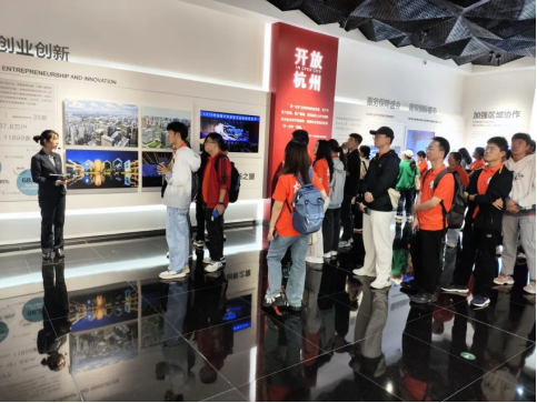 随后,同学们来到了钱江新城的杭州市城市规划展览馆,参观了各个展区。首先映入眼帘的,是一层巨大的“八八战略”光幕墙,通过观看图片、视频和模型等展示方式,同学们深入了解了杭州的历史文化和在“八八战略”指引下城市的精彩蝶变。在这里,同学们感受到了杭州城市发展对于“八八战略”的精准理解和应用,并以举办亚运为契机的时代新发展历程,学习了杭州的城市文化和城市精神,也更加深刻地认识到了城市规划对于城市发展的重要意义。