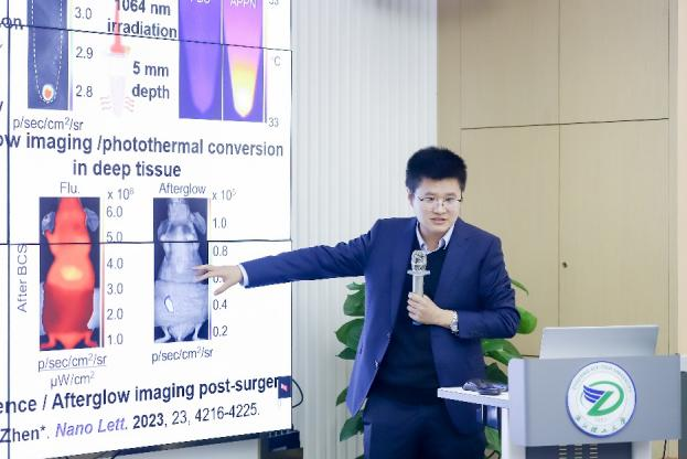 根特大学Mahta Mirzaei教授介绍了生物活性肽制备的具有抗炎活性伤口敷料,南京大学甄叙教授介绍了用于体内长余辉成像的有机半导体纳米粒子,复旦大学黄容琴教授介绍了胶质瘤诊断和治疗的新策略,巴基斯坦科学基金会主席Shahid Mahmood Baig教授介绍了如何使用基因组技术在近交群体中寻找疾病基因,澳大利亚皇家墨尔本理工大学欧建臻教授(线上)介绍了基于氧化钼的高性能生物传感器,阿威罗大学Rui Ramos Ferreirae E Silva教授介绍了碳纳米结构的化学气相沉积方法,信阳师范大学聂磊教授介绍了基于 dECM 的组织再生水凝胶。