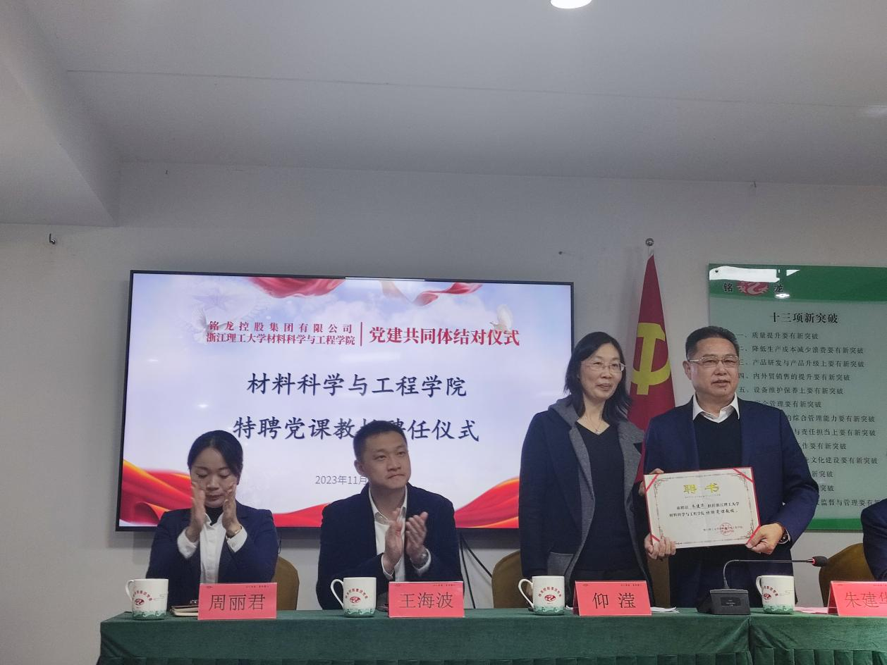 仰滢表示铭龙控股集团的主业与公司的专业契合度较高,校企双方前期有良好的产学研合作基础。她希望通过此次交流合作,努力实现“三联三共”,即通过党建联建、人才联育、科研联攻,达到资源共享、合作共赢、发展共谋,协同联动实现“一融四驱·聚链成材”材料党建品牌,以高质量党建引领高质量事业发展,为推动企业和地方经济发展贡献浙理材料力量。