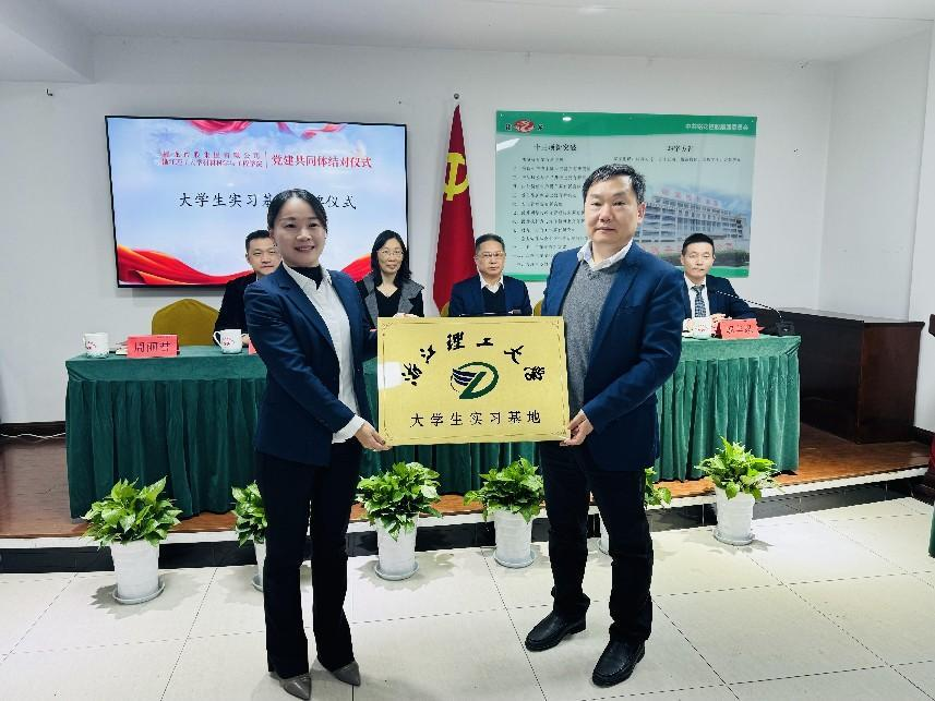 仰滢与朱建华、万军民共同签订《校企党建共同体建设协议书》,并为校企党建共同体进行揭牌。