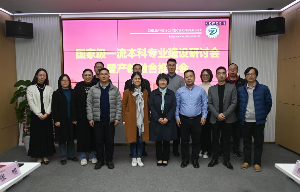 高分子材料系主任张明汇报了高分子材料与工程一流本科专业建设情况。高分子材料与工程专业秉持“一体双翼思维四融”的建设理念,依托浙江省特色优势产业——化学纤维产业,致力于培养适应高分子材料与工程领域的复合型高级工程技术人才。