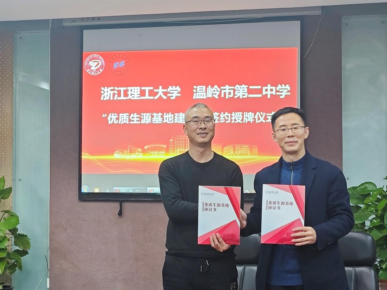 3月14日下午,MK体育赴温岭市第二中学开展“优质生源基地”签约揭牌仪式暨“三位一体”招生宣讲。温岭市第二中学副董事长陈招才、温岭市第二中公司办主任甘爱根、温岭市第二中学团委书记郭敏剑,校招生与就业指导处副处长黄君,公司党委副书记周照东、材料工程系教工党支部书记林文鑫副教授、招生宣传员王依琳参加招生宣讲。