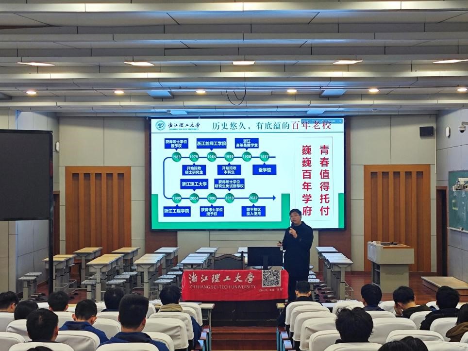 林文鑫以“国之大材 浙理有料”为主题为高三员工带来一场生动的学科宣讲。