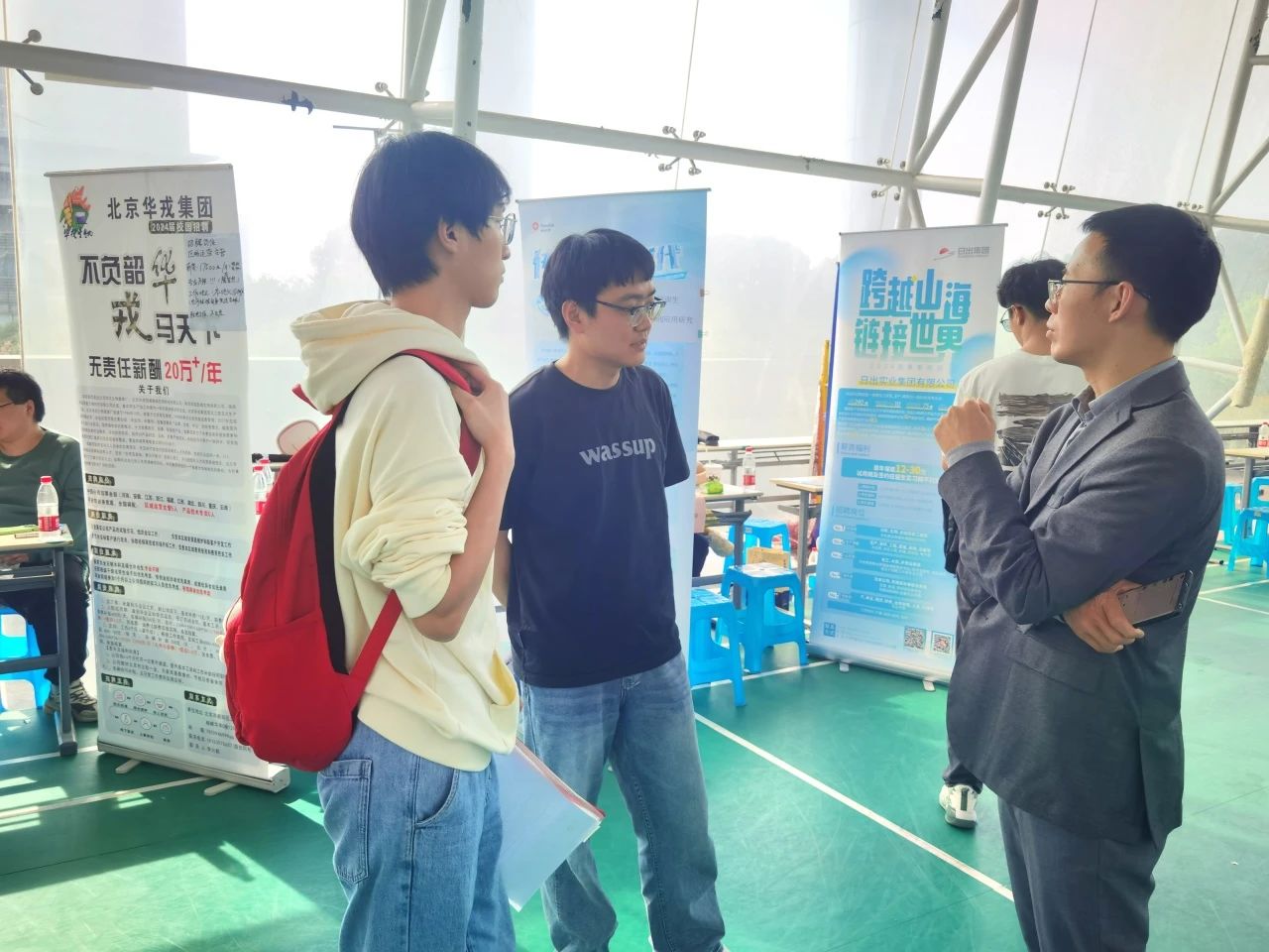 招聘会开始后,同学们有序进场,通过宣传喷绘简单地了解企业过后,在招聘会上大家选择自己心仪的岗位自信投递简历。公司老师亲切与同学们交流就业意向,为他们解答求职难题。用人单位HR就薪资水平、企业发展前景、岗位要求、福利待遇等方面给予同学们耐心细致的解答,与同学们积极交流,为毕业生们提供详细的就业信息和优良的实习机遇。招聘会现场氛围热烈,前来参会的同学络绎不绝,在各企业展位之间咨询并投递简历。