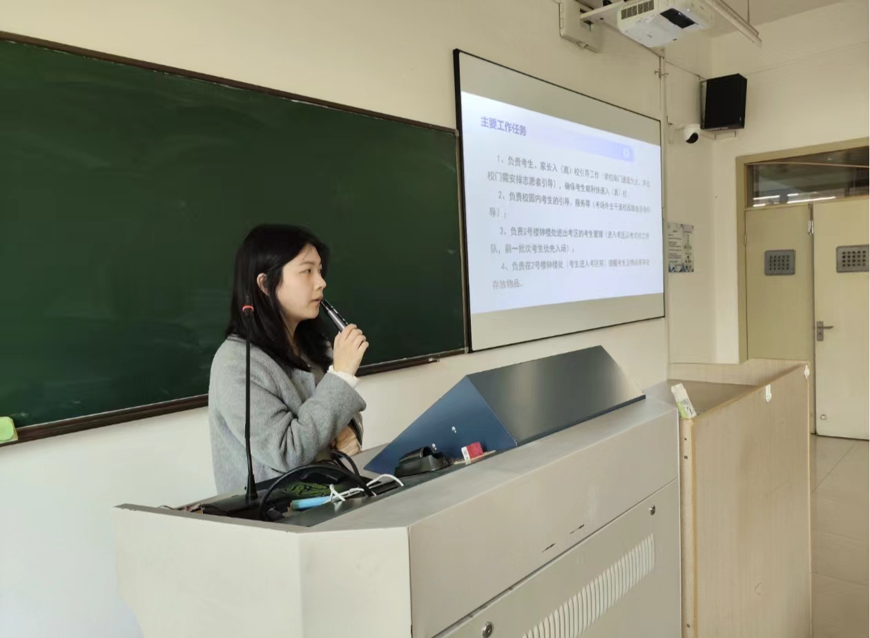 公司团委书记张姗姗老师对工作内容进行了提醒,工作人员要熟悉各项工作内容和流程,确保在工作中能够迅速、准确地响应考生和家长的需求。