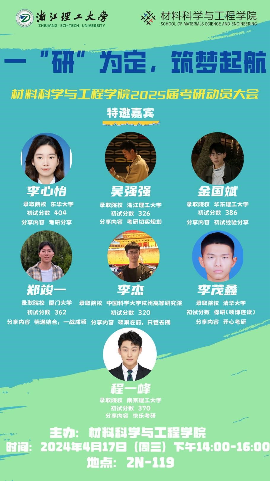 被中国科技大学杭州高等研究院录取的李杰学长,从前期思想准备及初试备考上给大家建议,告诉同学们选择大于努力,并告诫大家要戒骄戒躁,沉住心,一步一个脚印。
