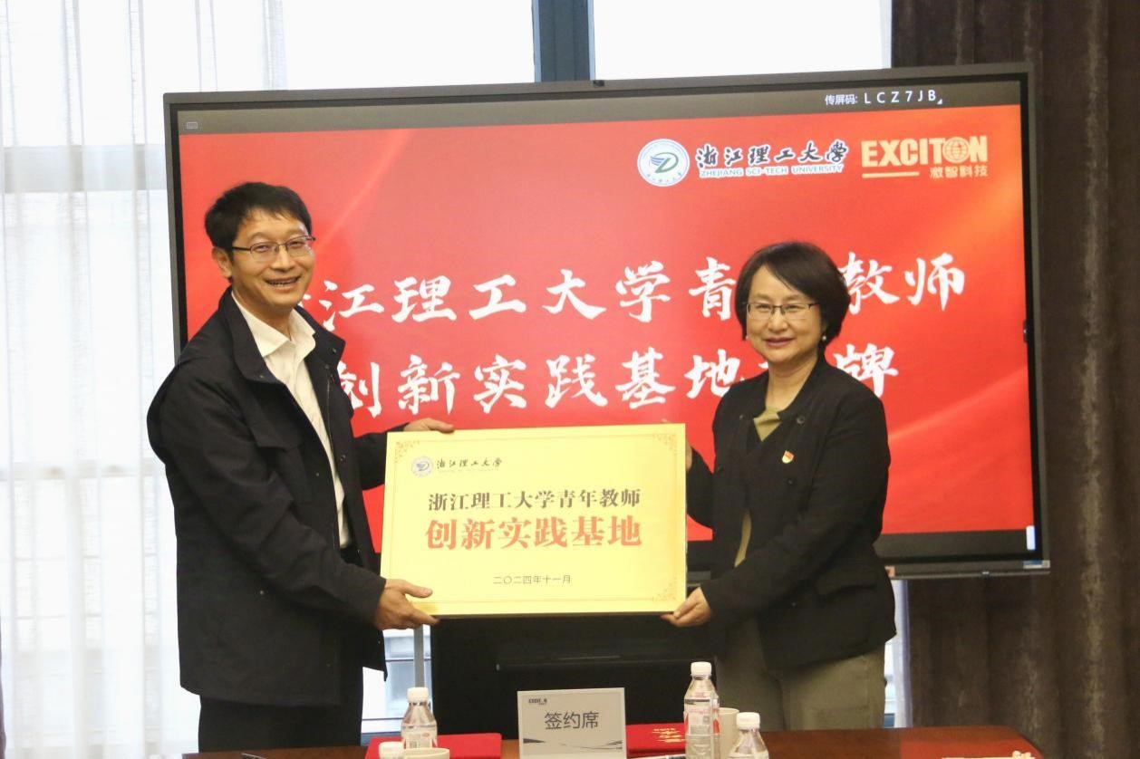 座谈现场举行MK体育青年教师创新实践基地、MK体育老员工实践实习基地授牌仪式,公司党委副书记姚珺向宁波激智科技股份有限公司运营副总胡金福授牌。