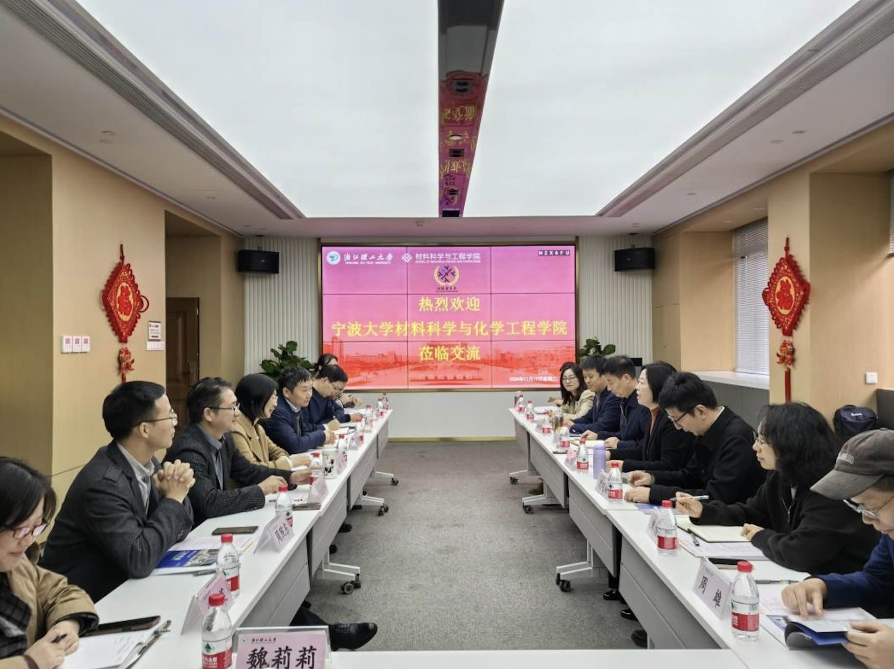 会前,宁波大学材料科学与化学工程公司一行参观了MK体育实验教学中心。全体领导班子成员、系主任等出席了交流会,并合影留念。