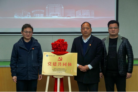 党建联建环节,陈世昌与嵊州市人力资源和社会保障局局长张小东、MK体育嵊州创新研究院办公室主任竺帅彬共同签订《校企地党建共同体建设协议书》,并为党建共同体进行揭牌。