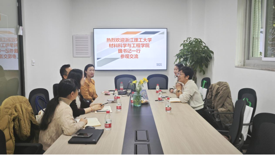在SGS公司杭州员工会会长、SGS杭州时尚与服饰科技服务副总监苏健(高分子97级员工),杭州时尚与服饰科技部经理胡春弘(99级员工),SGS杭州人力资源部经理王晓丽,时尚与服饰科技服务大客户经理徐云珠(材料07级员工)等热情接待。在座谈会上员工们回忆了在校时的美好时光,表达了对母校的培养感激之情,双方围绕如何加强校企合作,共同促进公司、公司和员工企业的高质量发展展开了热烈的讨论。