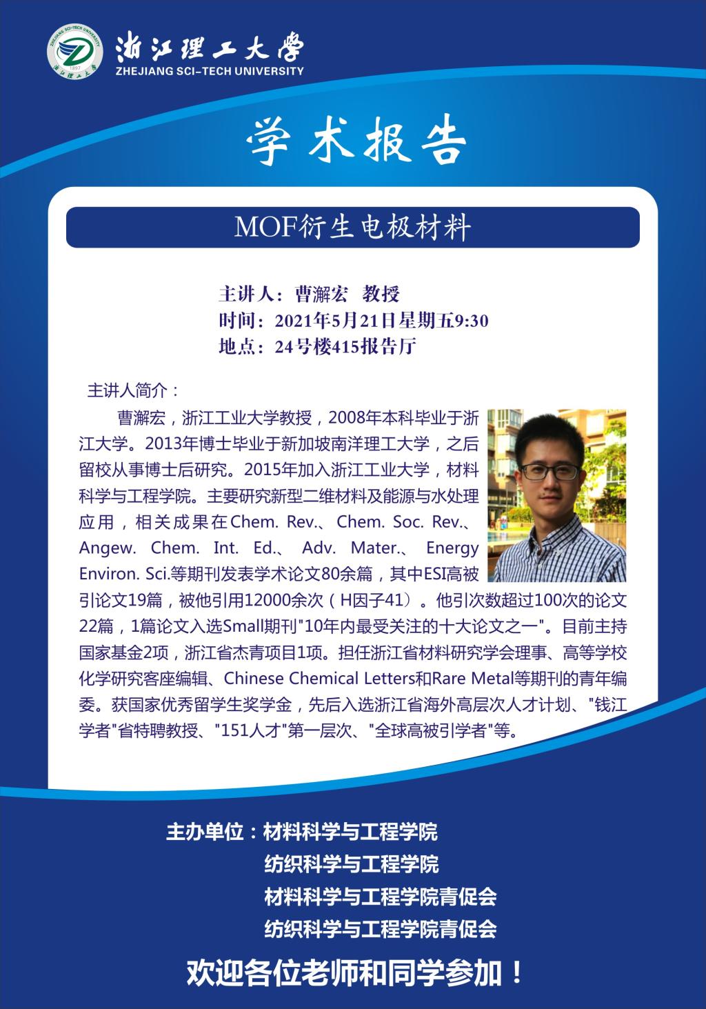 学术讲座【23】:MOF衍生电极材料
