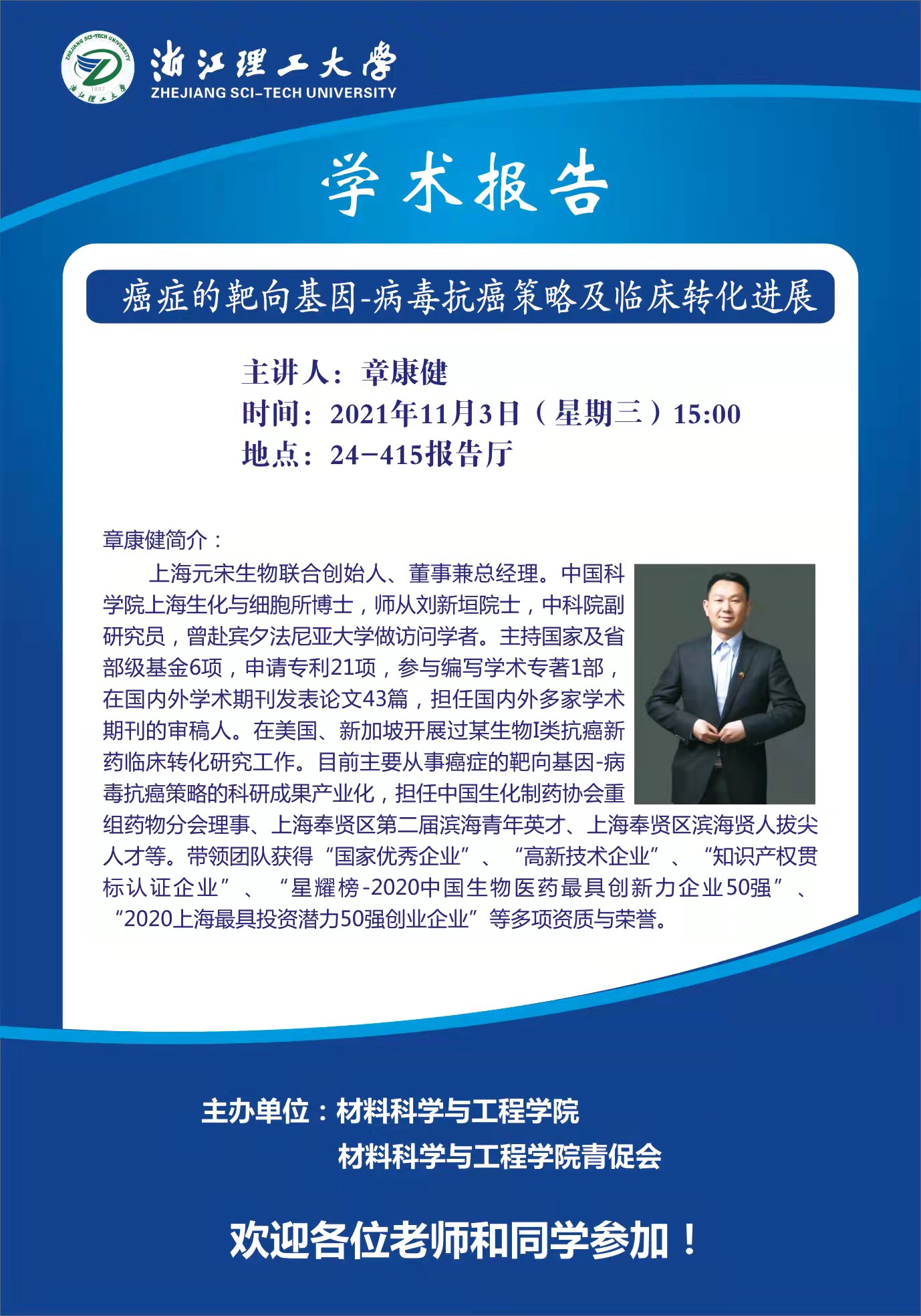 学术讲座【29】:癌症的靶向基因-病毒抗癌策略及临床转化进展