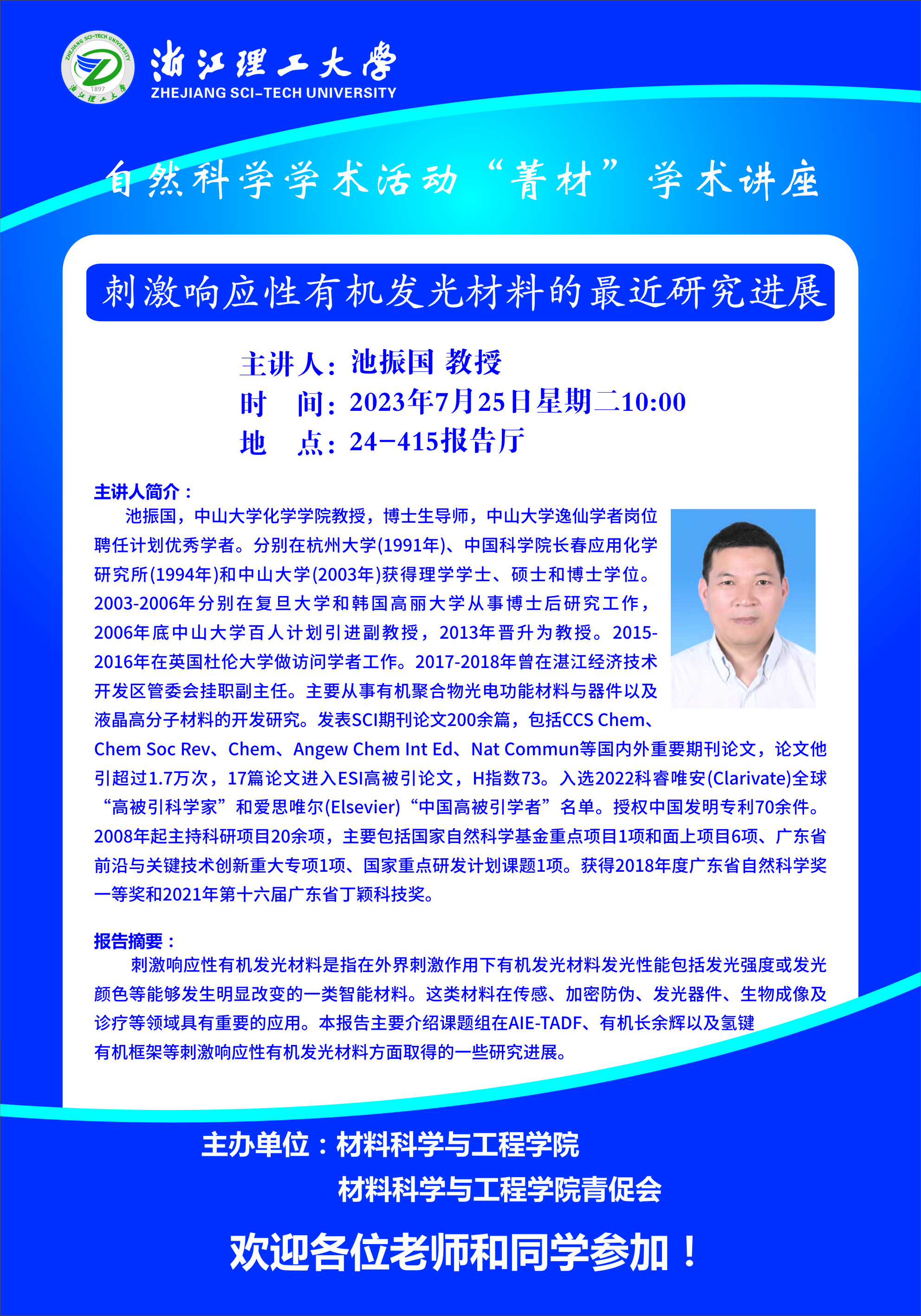 学术讲座【57】:刺激响应性有机发光材料的最近研究进展