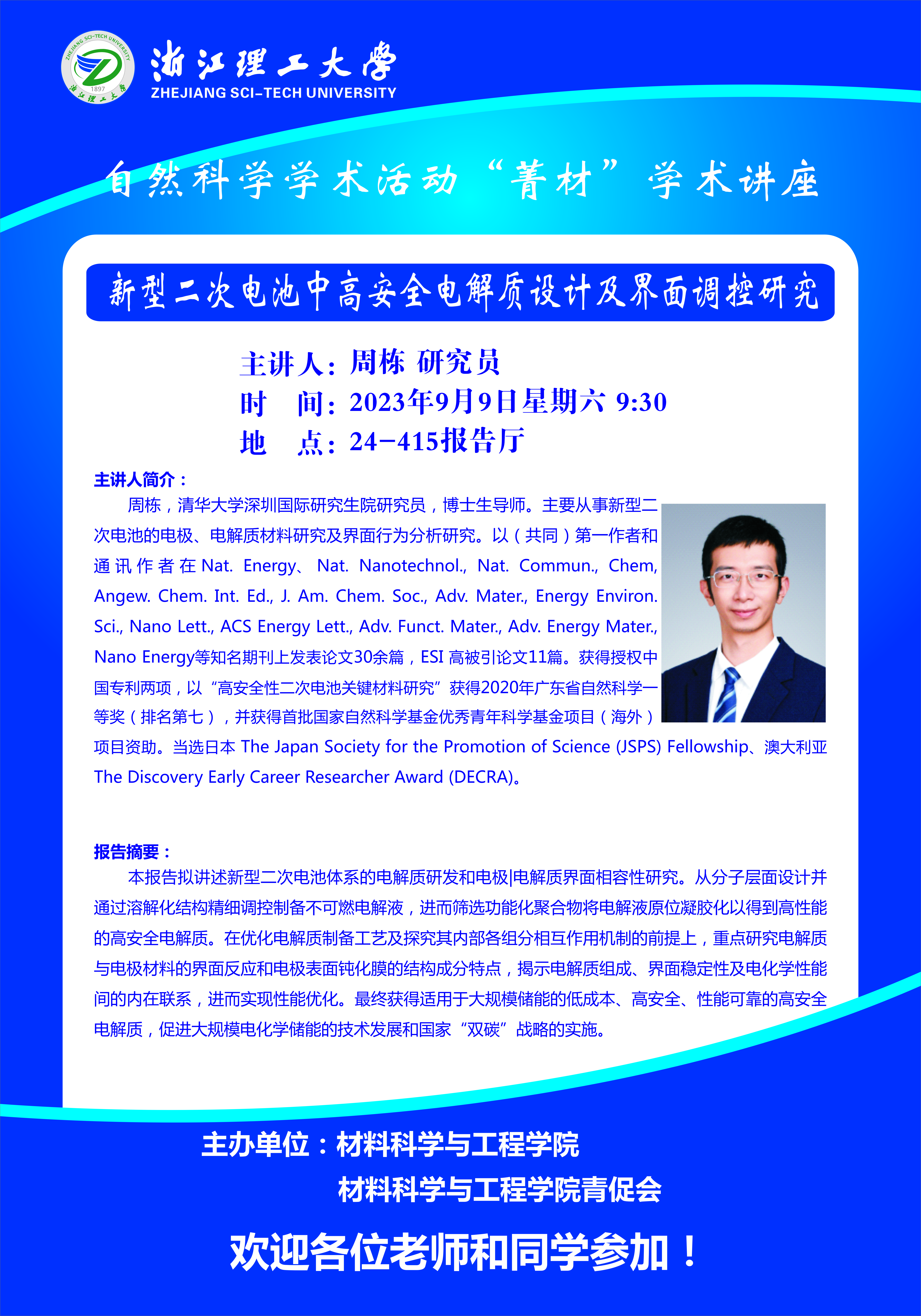学术讲座【60】:新型二次电池中高安全电解质设计及界面调控研究