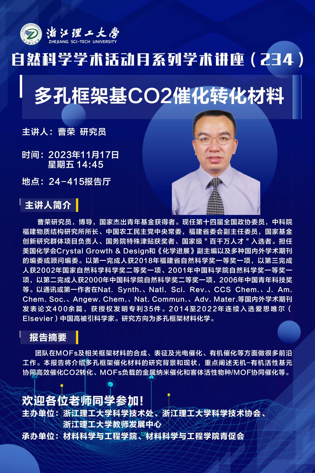 学术讲座【66】:多孔框架基CO2催化转化材料