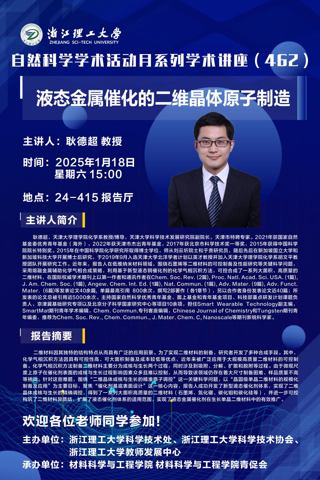 学术讲座【101】:液态金属催化的二维晶体原子制造