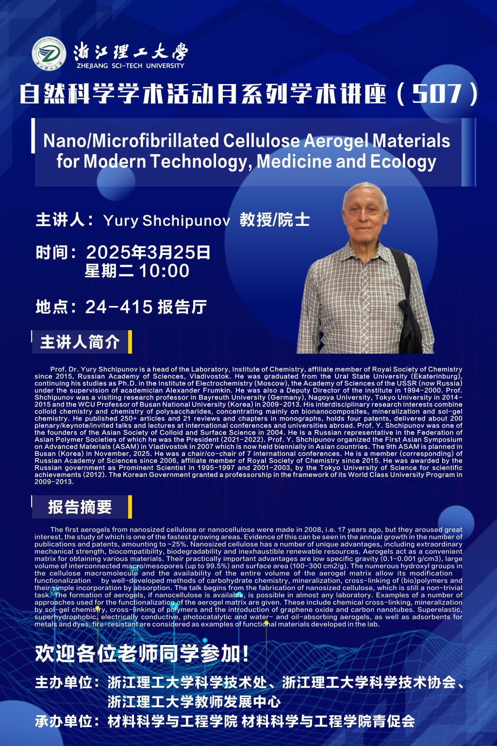 学术讲座 当前位置: 首页 > 学术讲座 > 正文 学术讲座【108】:Nano/Microfibrillated Cellulose Aerogel Materials for Modern Technology, Medicine and Ecology 来源:MK体育时间:2025-03-24浏览次数: