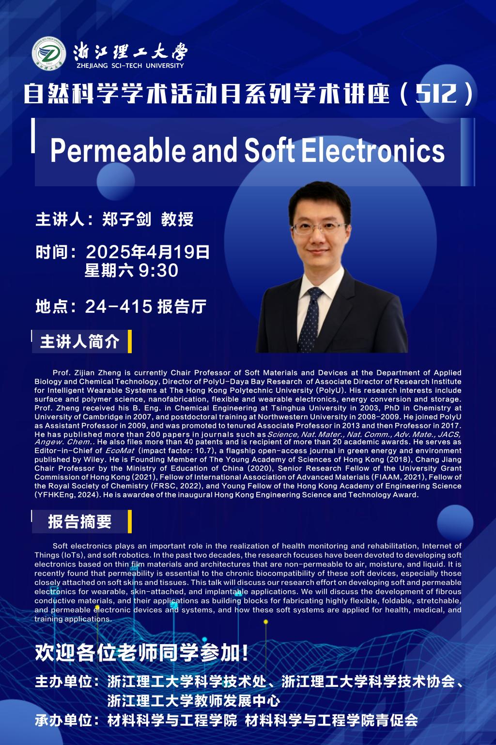 学术讲座【109】:Permeable and Soft Electronics