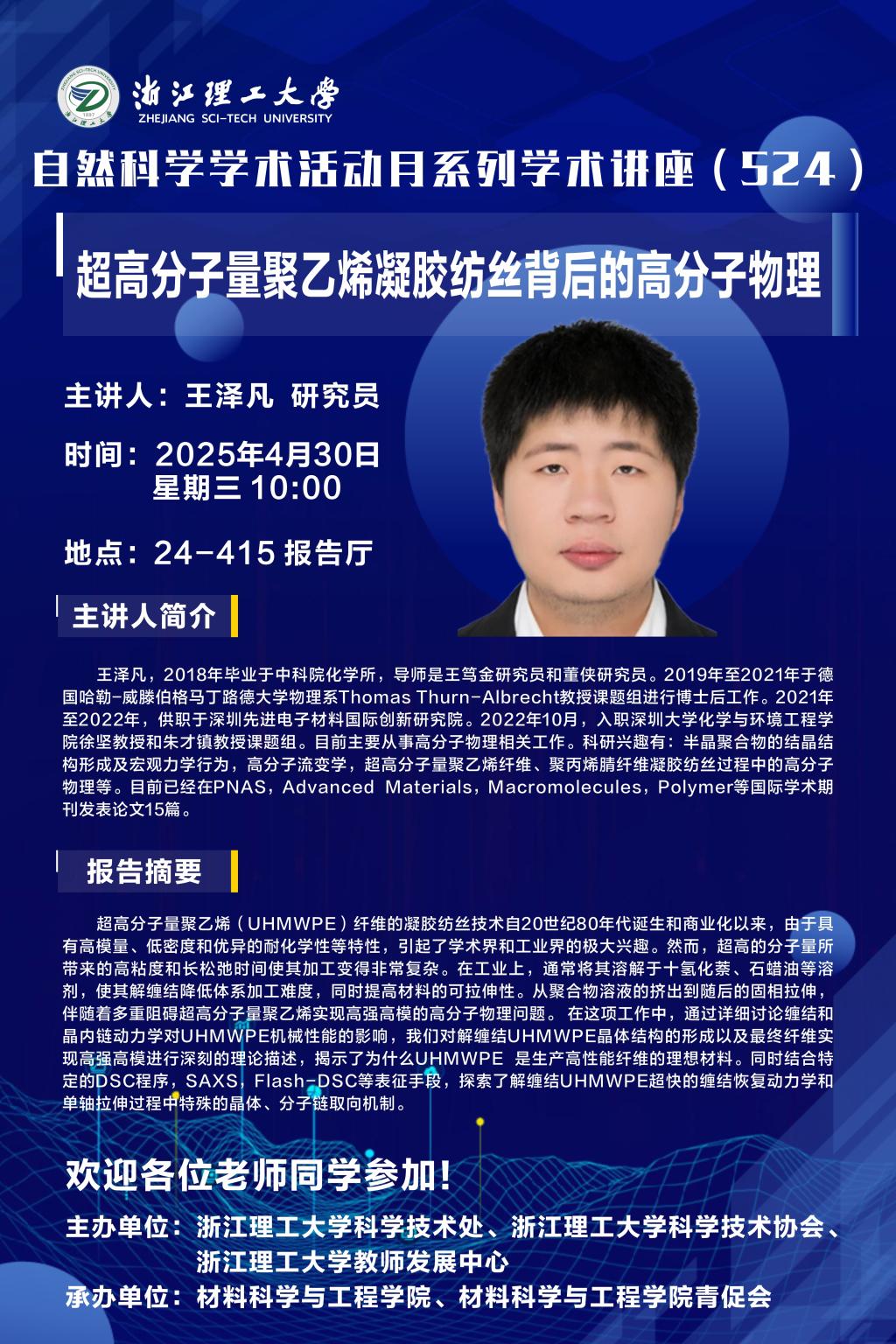学术讲座【111】:超高分子量聚乙烯凝胶纺丝背后的高分子物理