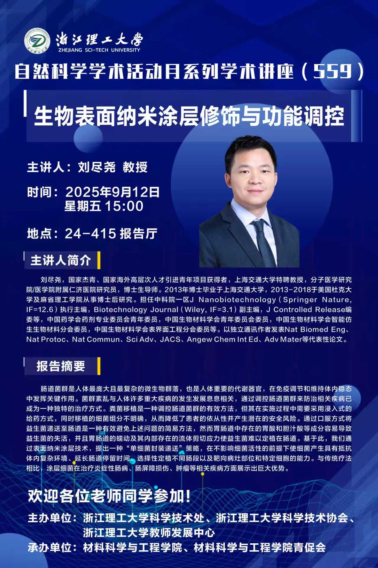 学术讲座【116】:生物表面纳米涂层修饰与功能调控