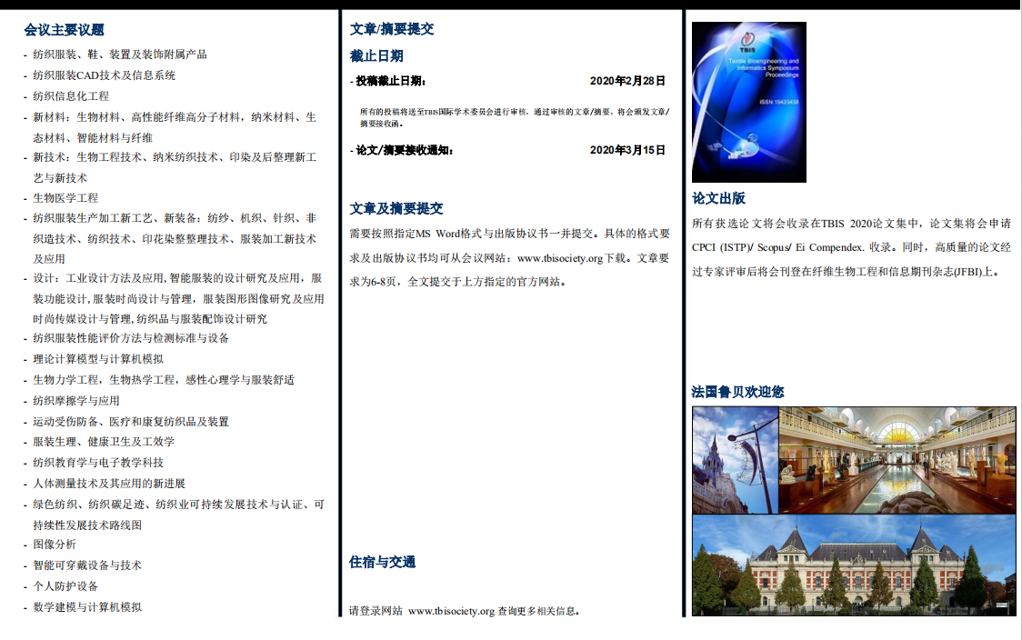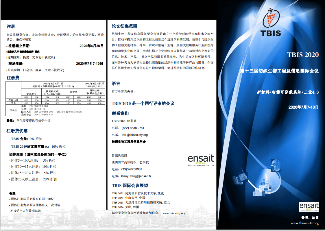 TBIS 2020第十三届纺织生物工程及信息国际会议的通知