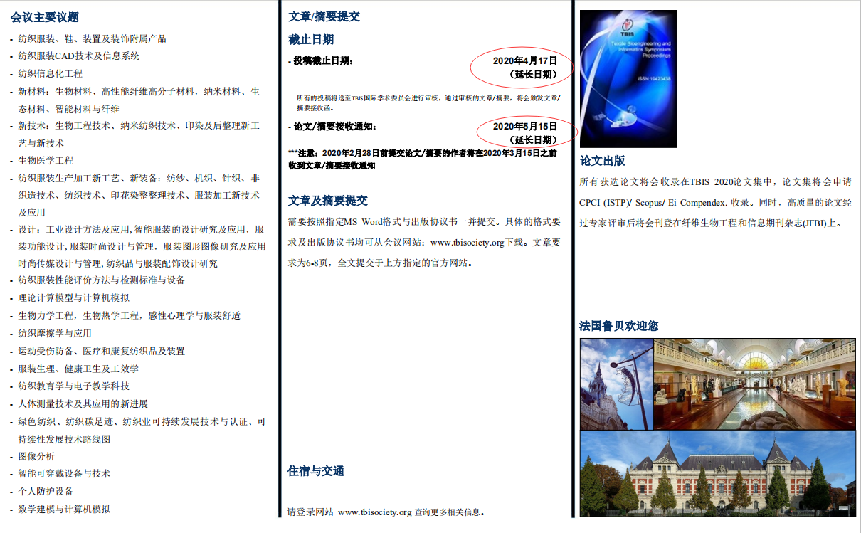 学术会议 当前位置: 首页 > 学术会议 > 正文 TBIS 2020第十三届纺织生物工程及信息国际会议-补充通知 来源:MK体育时间:2020-03-17浏览次数: 各位老师: 会议论文/摘要截止日期由2月28日延长至4月17日。