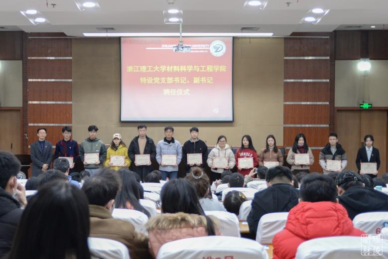 周照东老师为特设党支部书记、副书记颁发聘书。