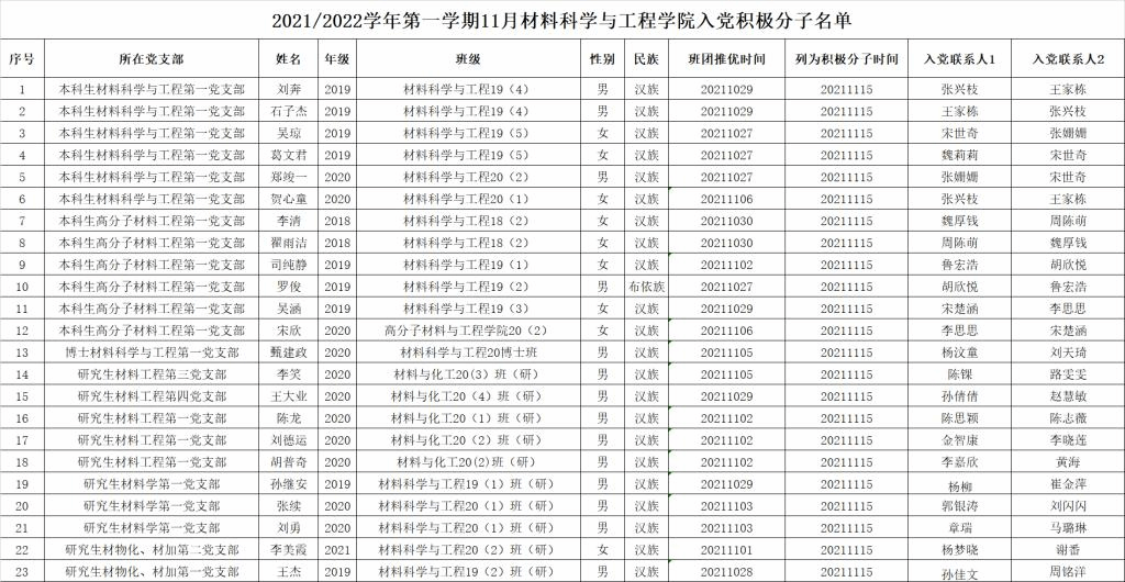 经各团支部“推优”、公司团委审核以及各党支部委员会讨论研究决定,确定刘奔等23位同志为入党积极分子,现将名单公示如下: