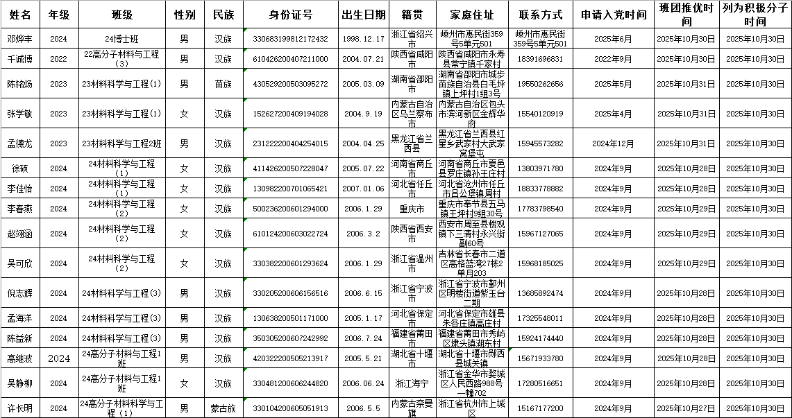 经各团支部“推优”、公司团委审核以及各党支部委员会讨论研究决定,确定邓烨丰等16位同志为入党积极分子,现将名单公示如下: