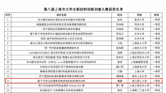 喜报|材料学子在第八届上海市老员工新材料创新创意大赛中喜获佳绩